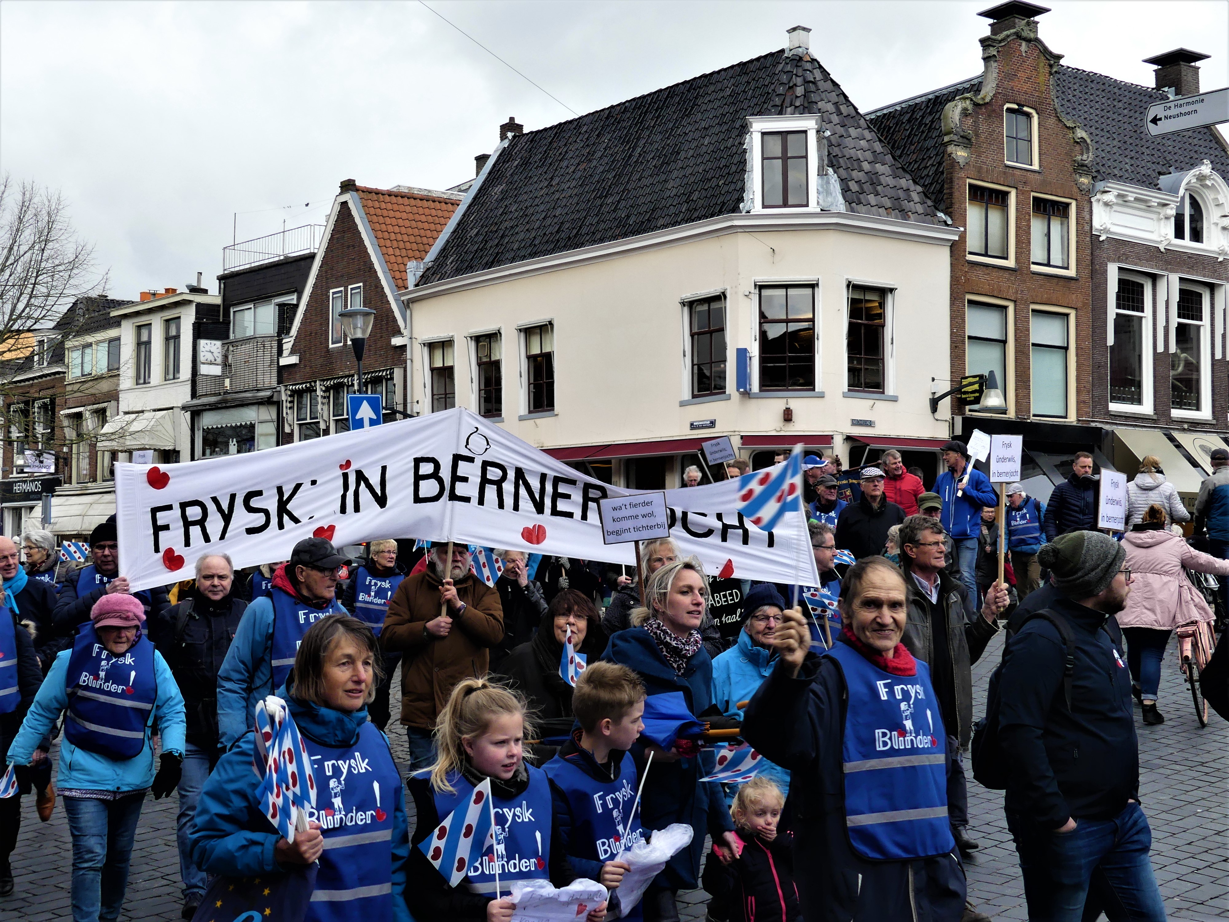 Het Fries moet een volwaardig vak op basisscholen worden met een inspectie vanuit de provincie en niet vanuit het rijk. Voor dit doel gingen zo'n honderd mensen zaterdag de straat op. De toespraken waaiden haast uit de handen, het was koud en er kwamen op het Zaailand in Leeuwarden zaterdag een derde minder mensen opdagen dan bij eenzelfde demonstratie in 2016. Maar burgeractiegroep Sis Tsiis houdt vol. ,,Wy komme op 'e dyk werom en wy geane troch mei politisi op 'e hûd te sitten'', zei Piter Dykstra namens Sis Tsiis in zijn slotwoord.