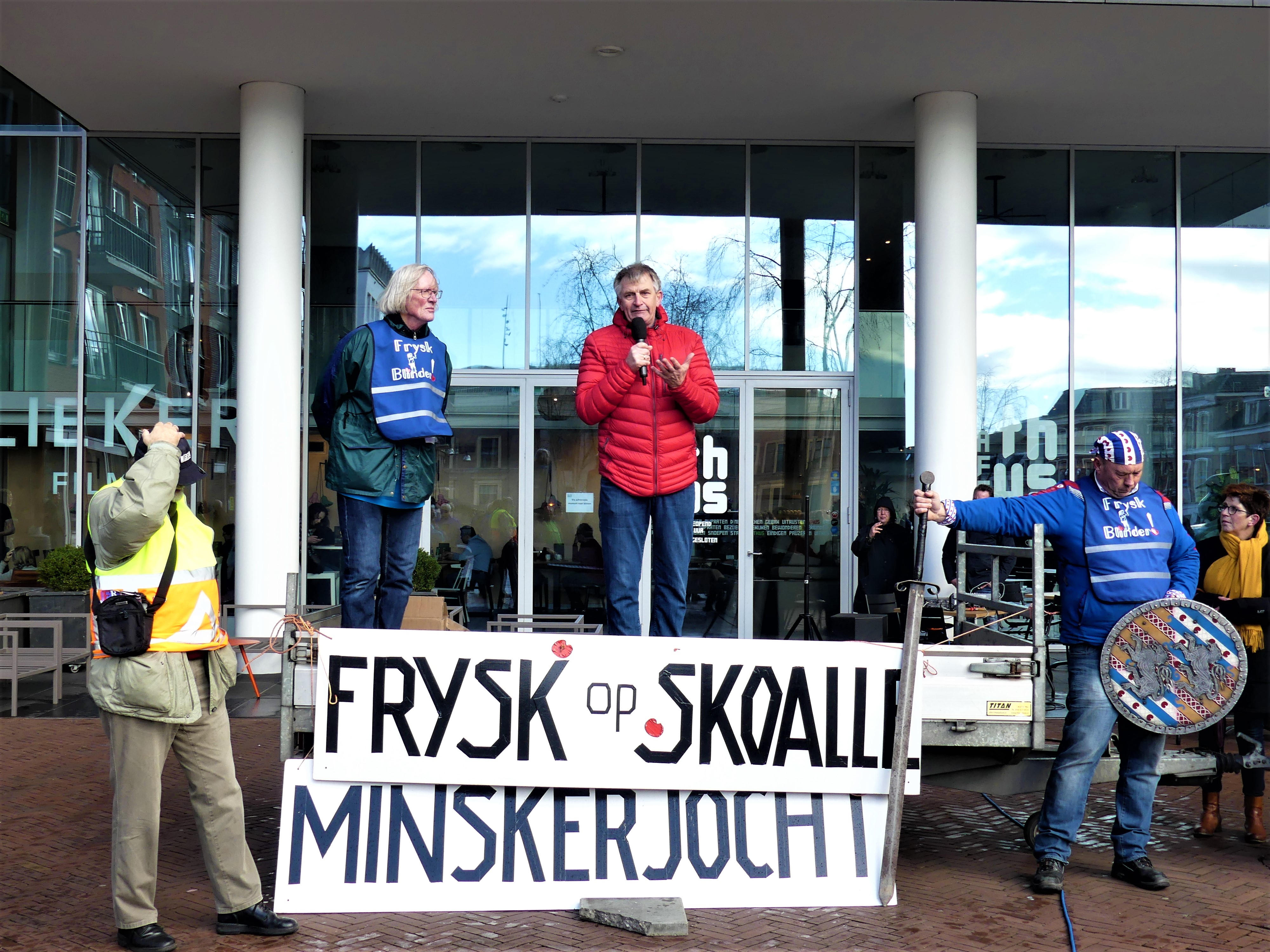 De grieven van Sis Tsiis richten zich vooral tegen het beleid van de provincie die pas in 2030 het Fries op alle scholen in orde wil hebben. Dan moeten de ontheffingen voor het geven van Friese les verleden tijd zijn. Dat kan ook in 2025 vindt Sis Tsiis. Als het langer duurt, gaat er weer een generatie verloren die de eigen memmetaal niet goed beheerst als ze van school komen. FNP'er Sijbe Knol kan erover meepraten, vertelde hij op het podium. ,,Ik doch alles yn it Frysk, mar ik wie analfabeet yn myn eigen taal doe't ik fan skoalle kaam.'' De FNP vind 2030 als streefdatum ook veel te laat, liet hij weten.