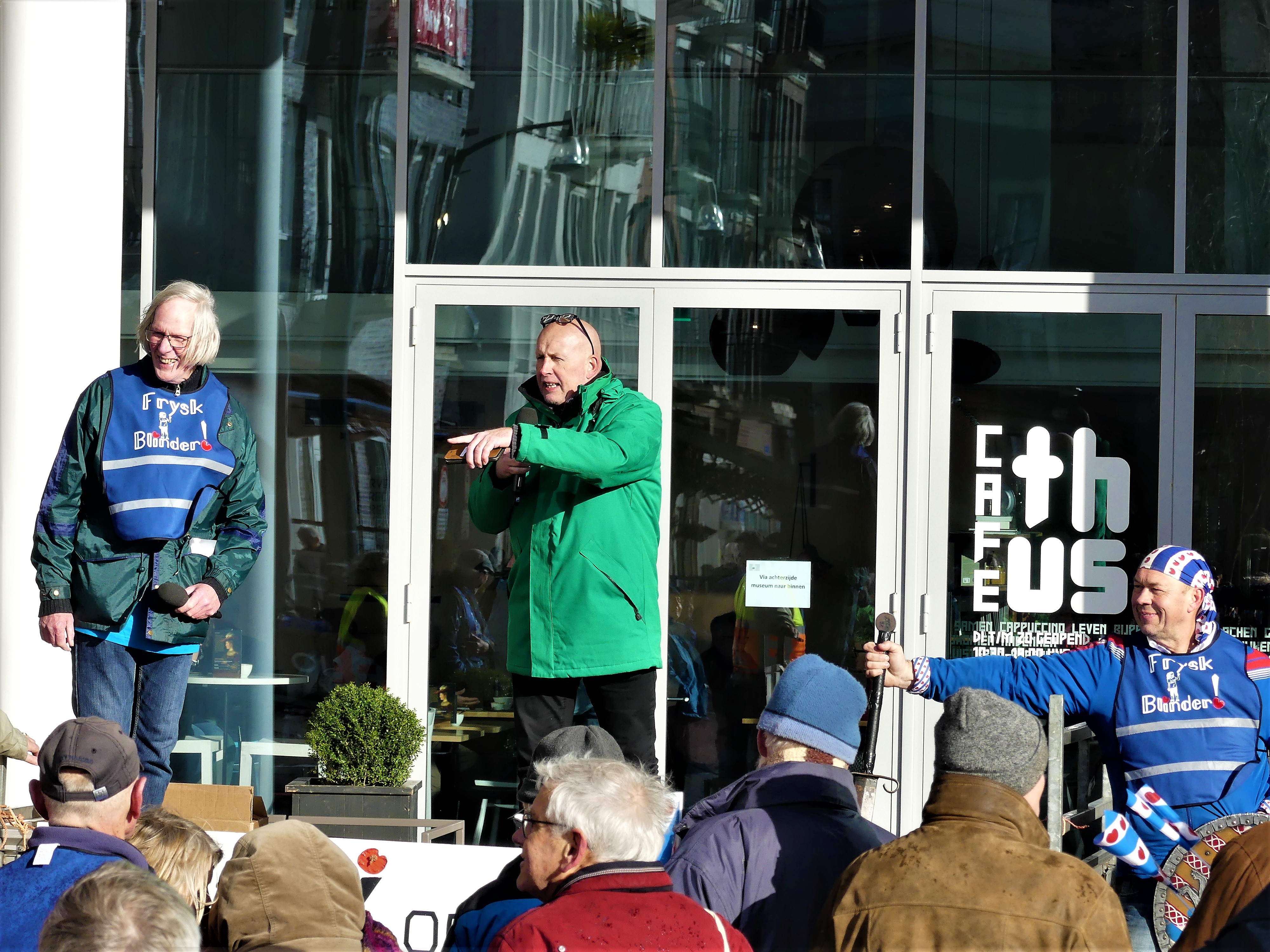 We witte allegearre wol dat de ferkiezingen foar Provinsjale Steaten fan 20 maart kommendeweis binne. Dêrom waard dizze manifestaasje no holden en dêrom waarden diskear fansels politisy frege om de taharkers te fernijen wêr't dy partijen yn dit ferhaal steane en wat wy fan har ferwachtsje kinne. De sprekkers dy't oan it wurd kamen, wiene: Douwe Hoogland (PvdA), Rendert Algra (CDA), Martijn Krikke (GrienLinks), Sijbe Knol (FNP) en dy waarden ferge om oer in ferskaat oan ûnderwerpen útspraken te dwaan.