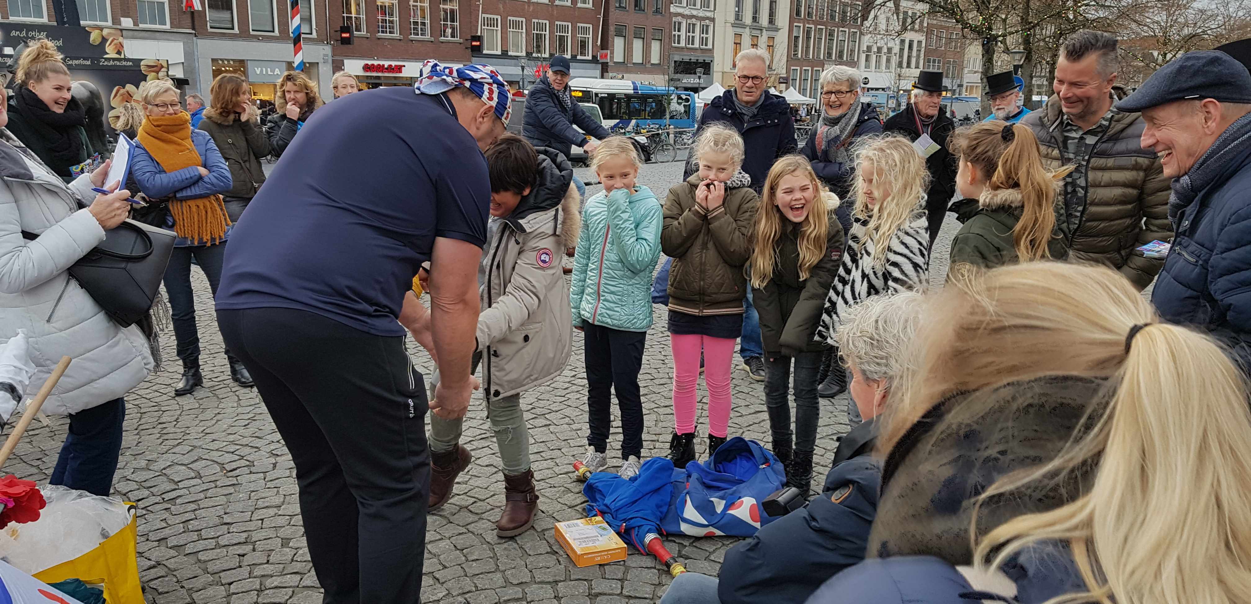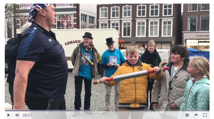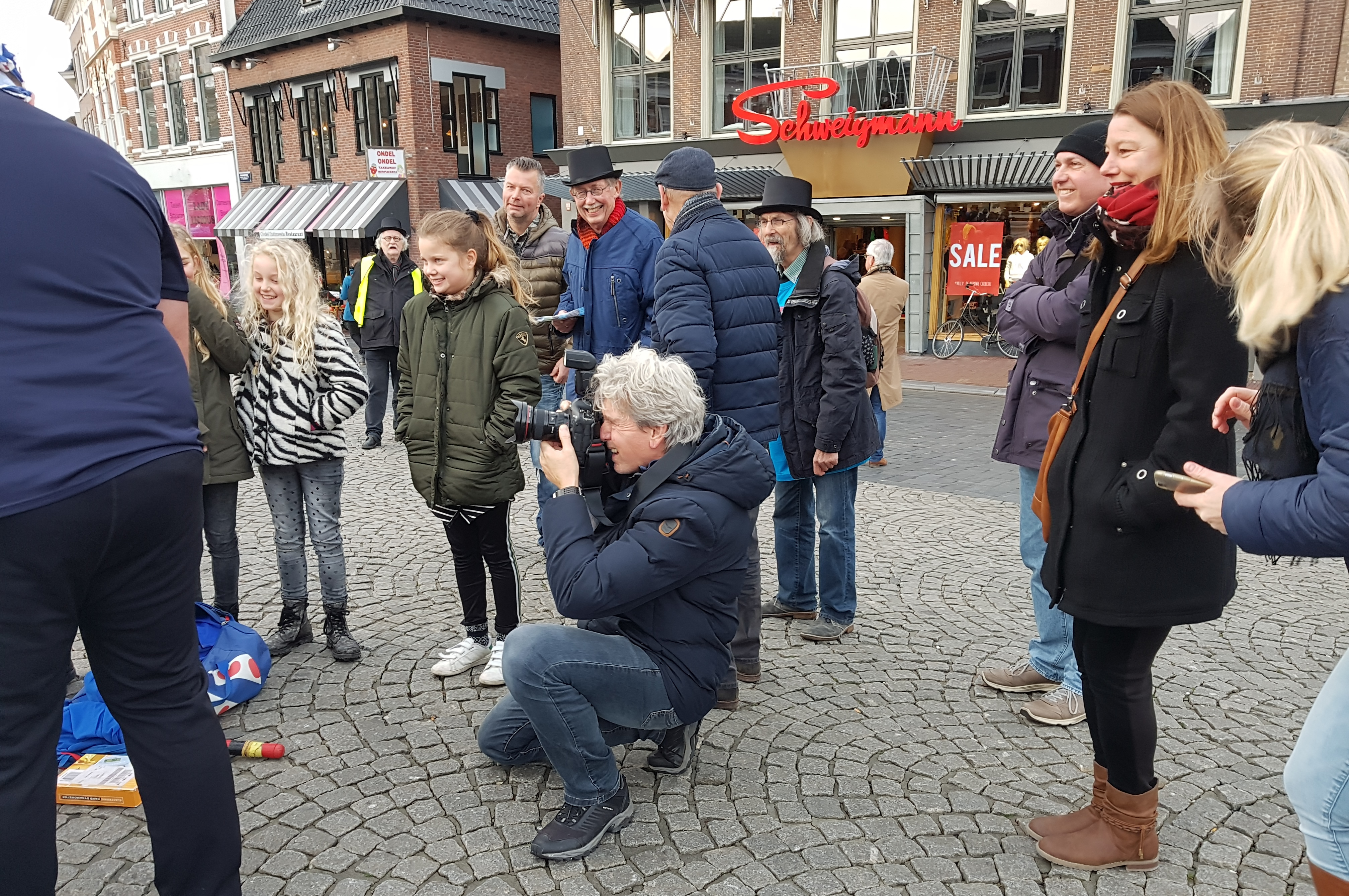 Drie Leeuwarder basisscholen hebben de ondergrens voor Friese les op school verlaten. Reden voor burgeractiegroep Sis Tsiis om ze te belonen.,,Mei ien hân knipe, hé? Der wurdt net smokkele”, zegt sterke man Wout Zijlstra op de lange pijp in het centrum van Leeuwarden. Sofie (9) knijpt 20,9 kilo in de krachtmeter, niet slecht.