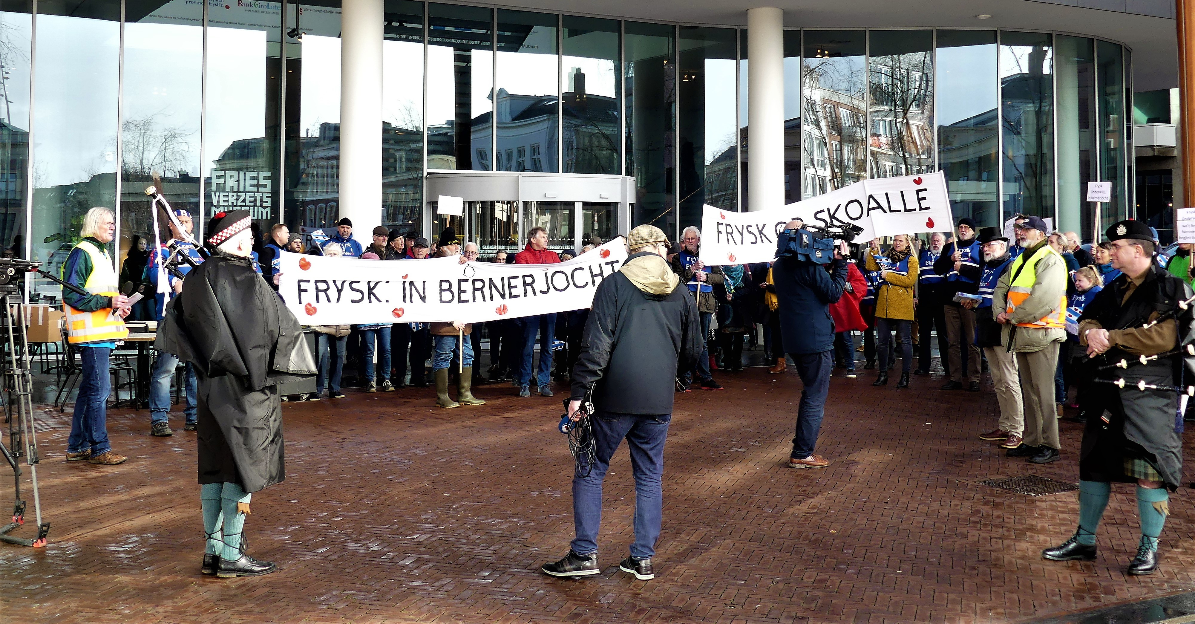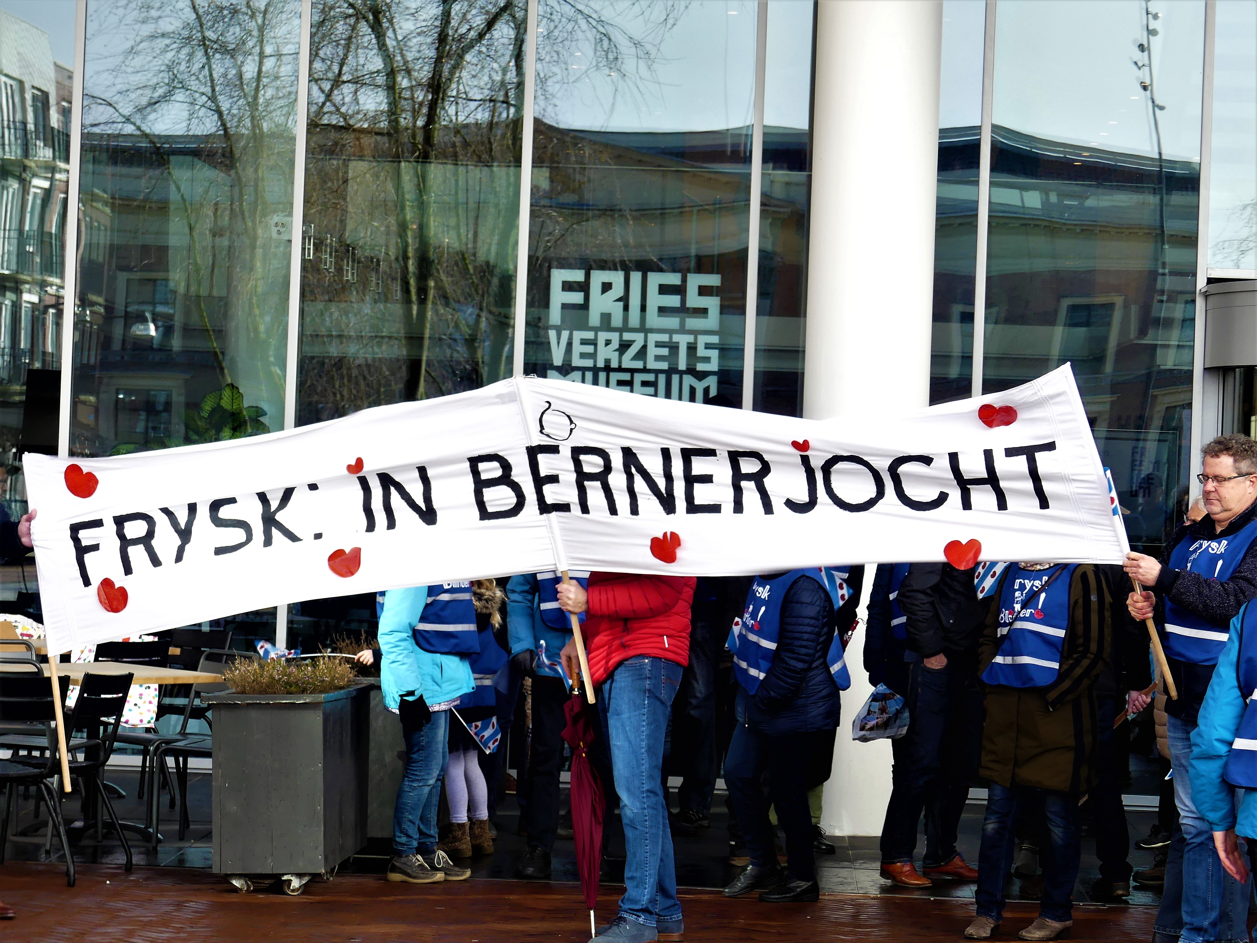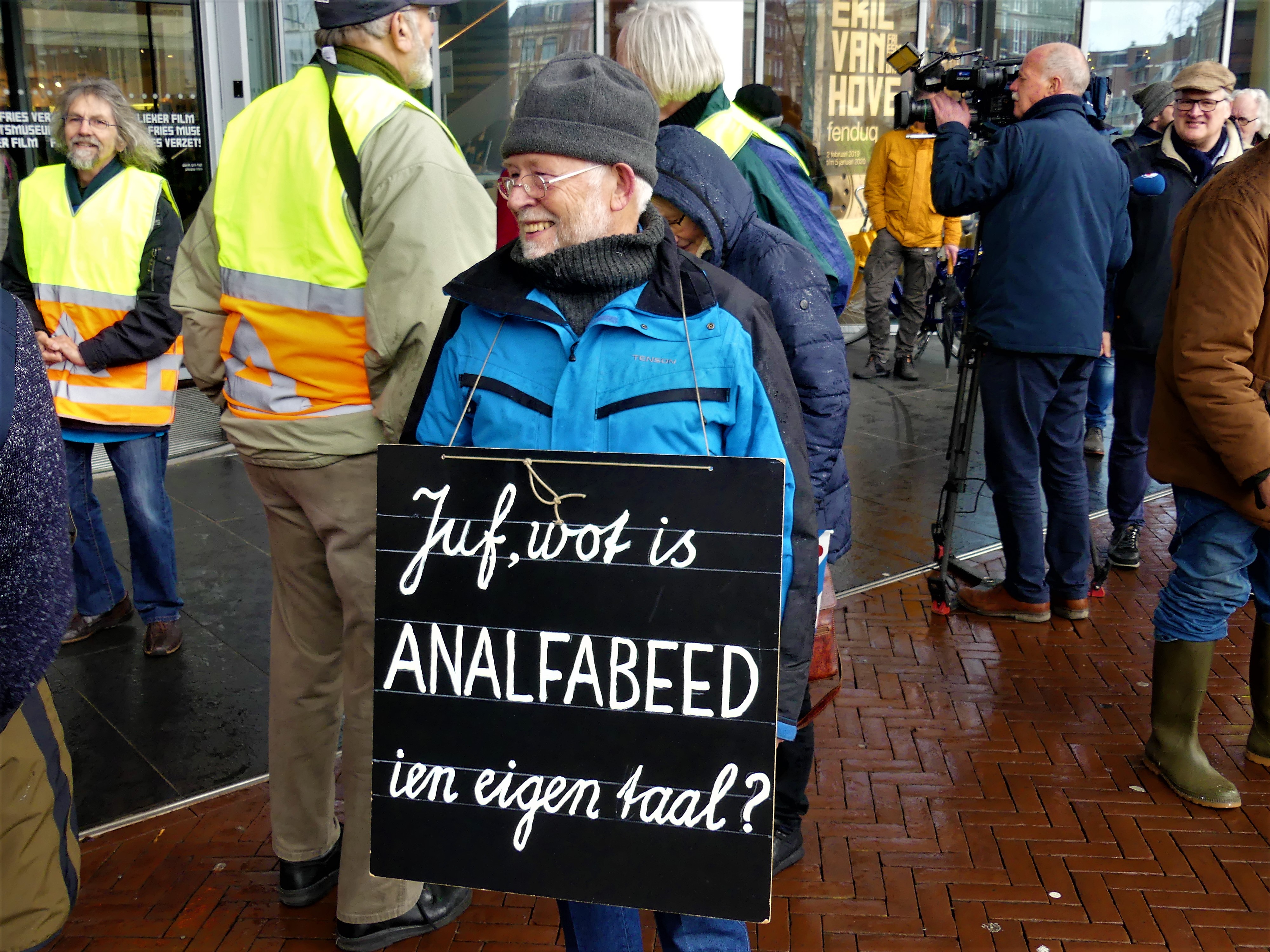 Het Fries moet een volwaardig vak op basisscholen worden met een inspectie vanuit de provincie en niet vanuit het rijk. Voor dit doel gingen zo'n honderd mensen zaterdag de straat op. De toespraken waaiden haast uit de handen, het was koud en er kwamen op het Zaailand in Leeuwarden zaterdag een derde minder mensen opdagen dan bij eenzelfde demonstratie in 2016. Maar burgeractiegroep Sis Tsiis houdt vol. ,,Wy komme op 'e dyk werom en wy geane troch mei politisi op 'e hûd te sitten'', zei Piter Dykstra namens Sis Tsiis in zijn slotwoord.