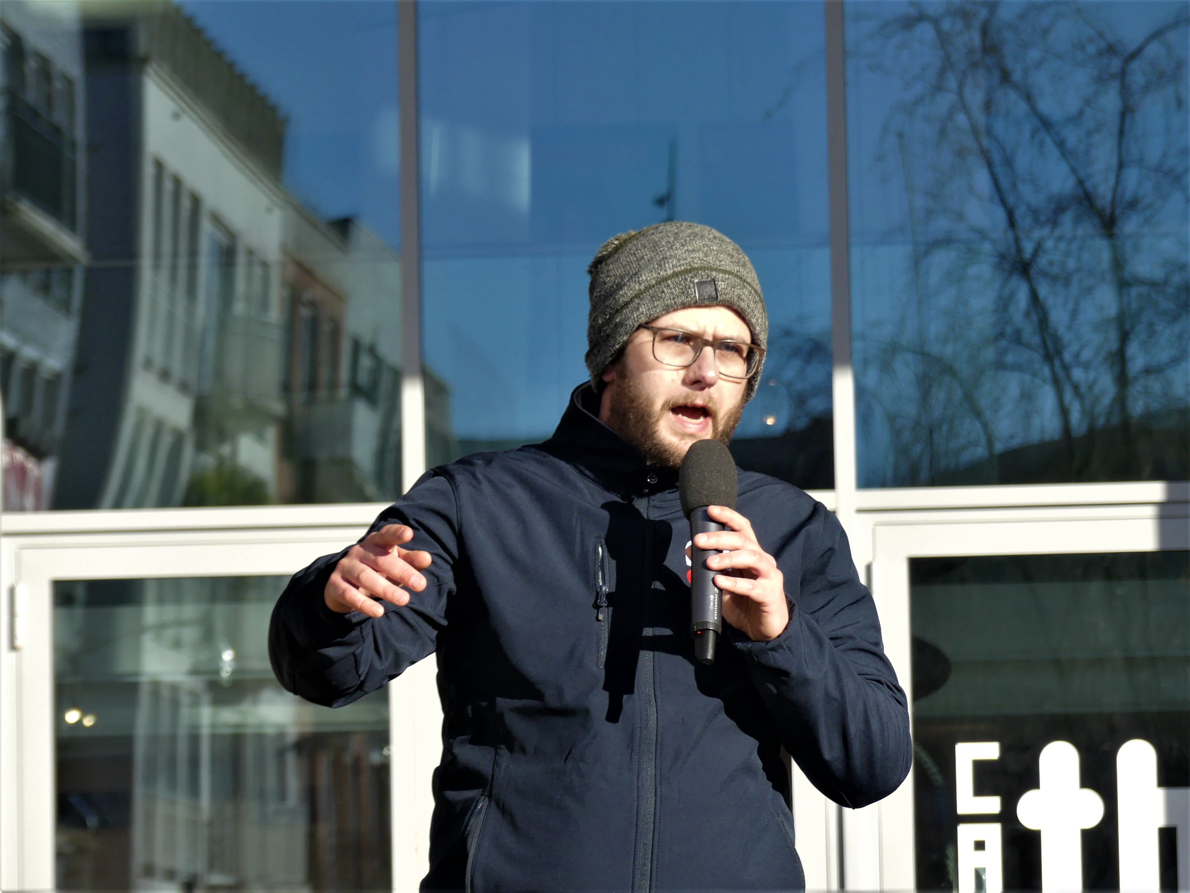 Taspraak fan Geart Tigchelaar by de manifestaasje fan Sis Tsiis op 9 maart 2019 op it Saailân