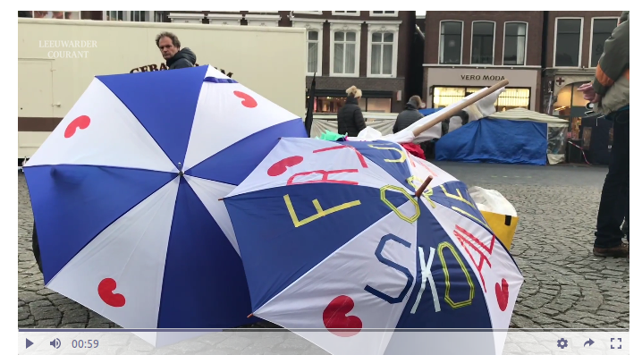 ,,Mar nimmen docht der wat oan”, treurt Dykstra. ,,Der binne eins gjin machtsmiddelen om dat ôf te twingen, dêrom besykje wy dat op in fleurige wize te dwaan.”